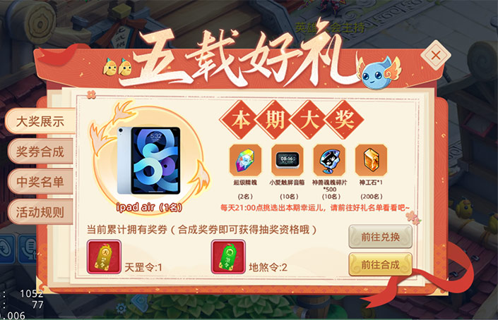 6.在抽奖活动结束后水粉们可以使用天罡令和地煞令兑换丰厚的奖励,水粉们赶紧收集吧~