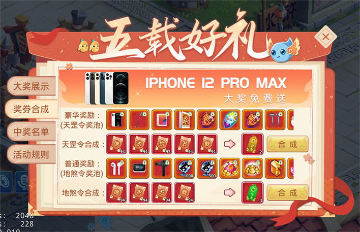 1.水粉们参与日常活动及国风之旅限时副本会掉落"锦"、"衣"、"织"、"五"、"载"五个道具,在活动页面内可以通过使用"锦"、"衣"、"织"、"五"、"载"五个道具合成天罡令、使用"锦"、"衣"、"五"、"载"四个道具可以合成地煞令,天罡令可以参与抽取高级奖池内的奖品,地煞令可以参与抽取普通奖池的奖品;
