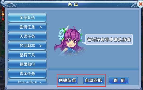 有些剧情任务,一个人挑战有难度,还有些日常任务和特殊副本需要≥3人组队挑战的,比如梦回副本、糖果幽径、星将下凡等,可以点击快捷组队,自己创建或者匹配队伍完成挑战。组队的阵法由队长选择,队伍配置推荐:奶妈+输出,或者奶妈+控制+输出。